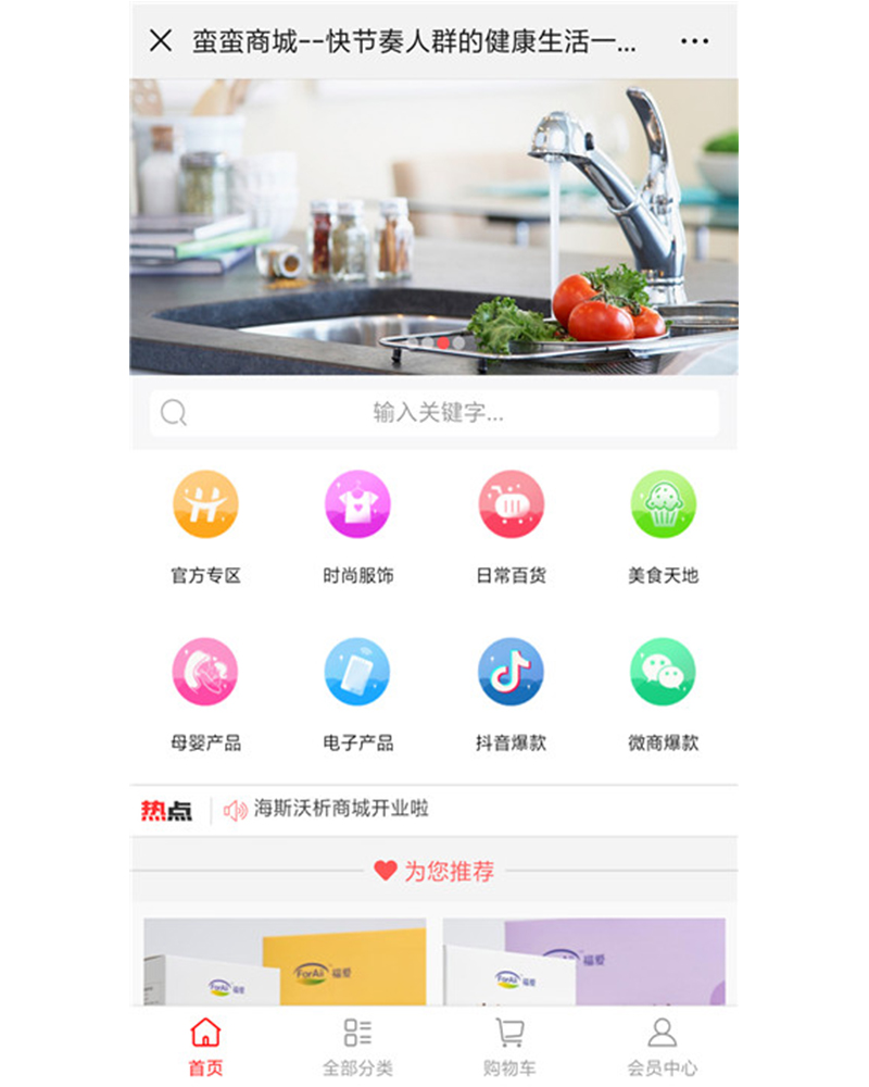 該商城是全方位購物一體的微信商城,開發(fā)有全部分類、購物車、會員中心等等